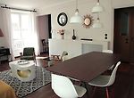 이 레이아웃은 거실과 식탁이 하나의 공간처럼 느껴져 편리하고 식탁 쪽의 의자에 앉아있는 사람과 소파에 앉아있는 사람이 서로 마주 보고 있어서 대화를 하기도 수월해 보입니다.
